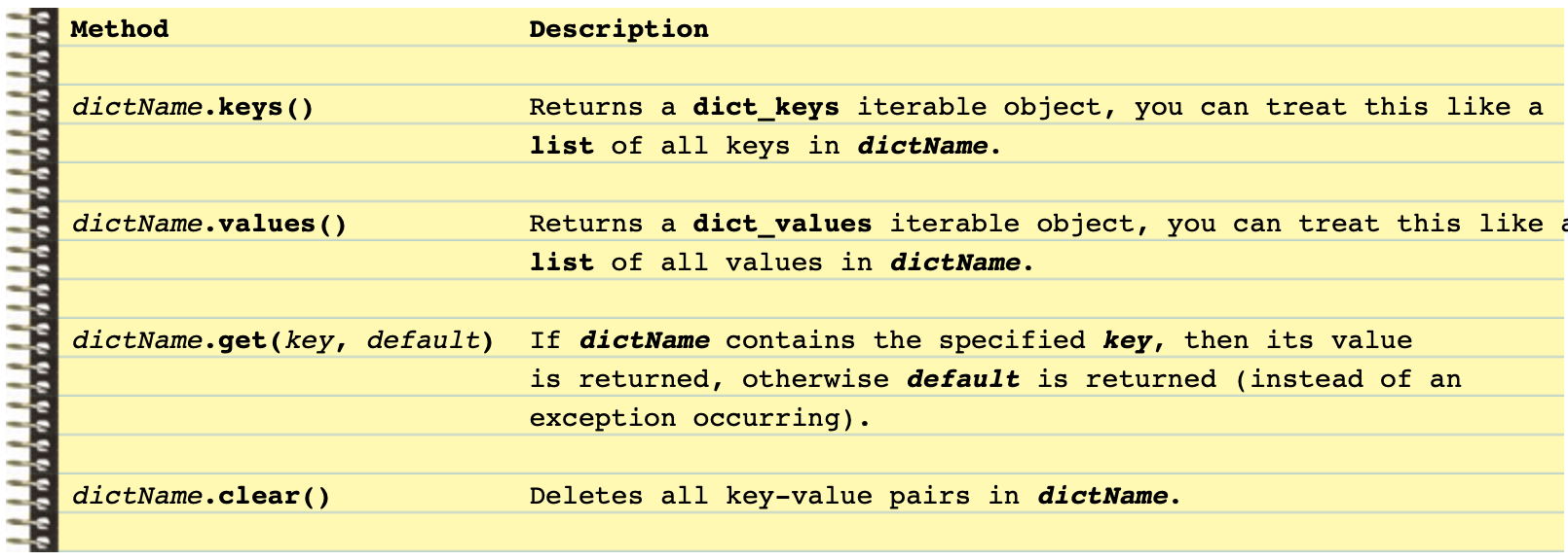 Dictionary Methods